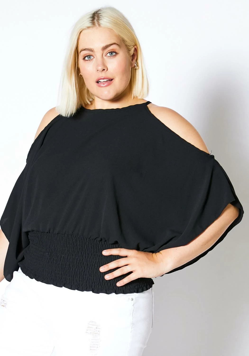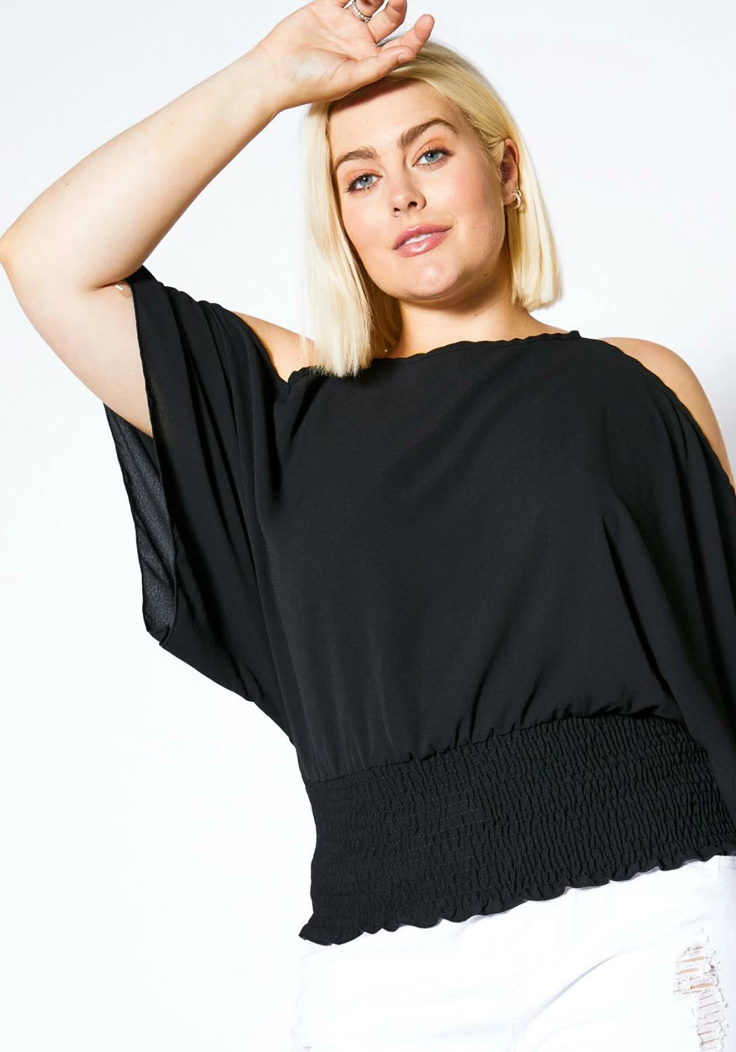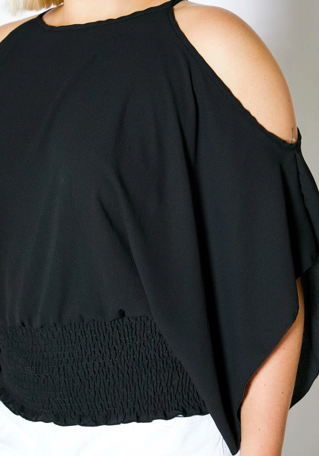 Asoph’s elegant cold shoulder styled blouse with flowing effect and ruched detail
