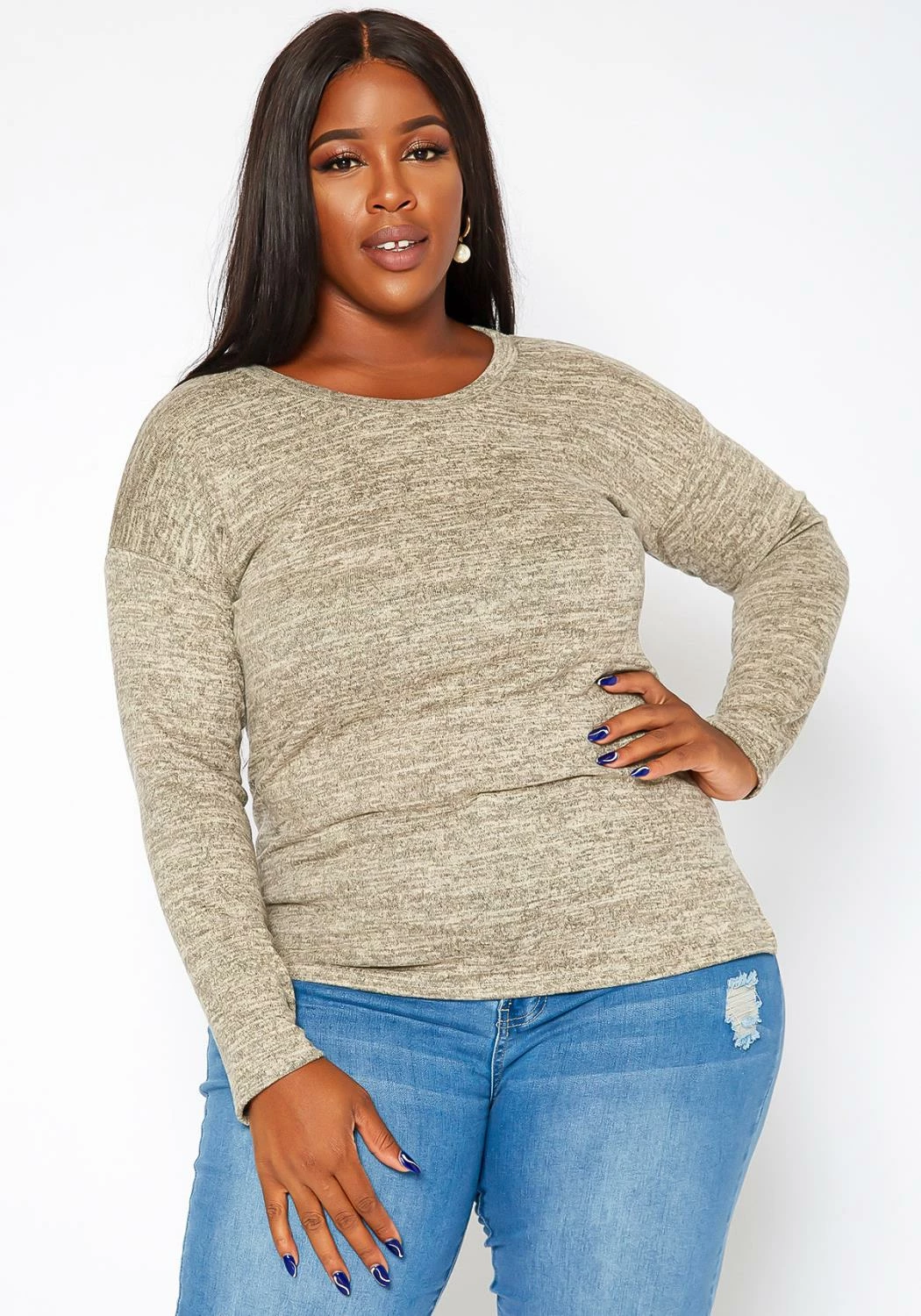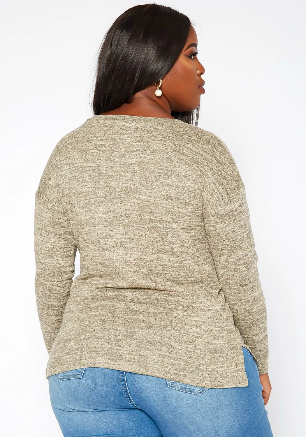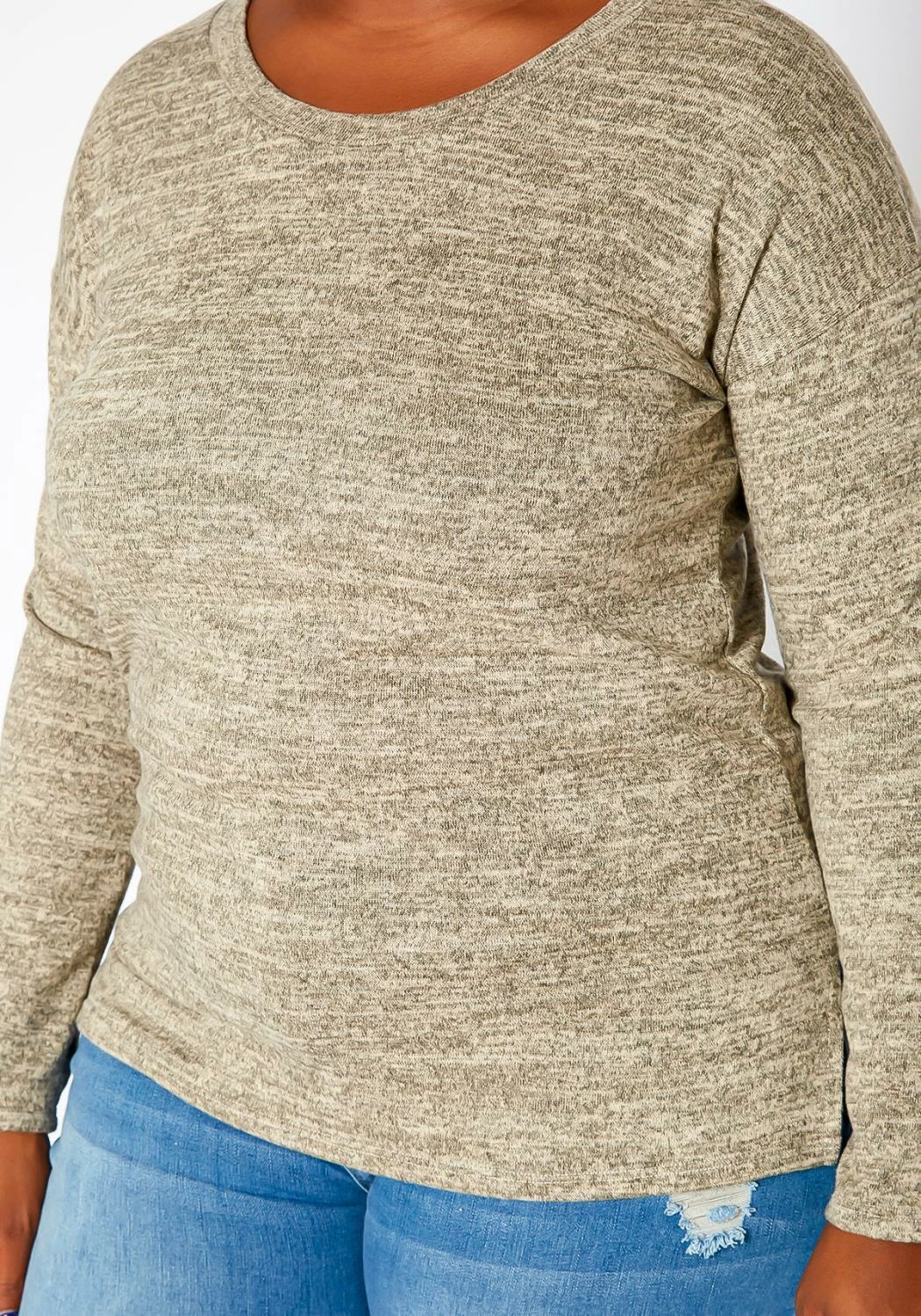Plus size women’s essential long sleeve top in casual crew neck style, slim fit and side slit hem design.