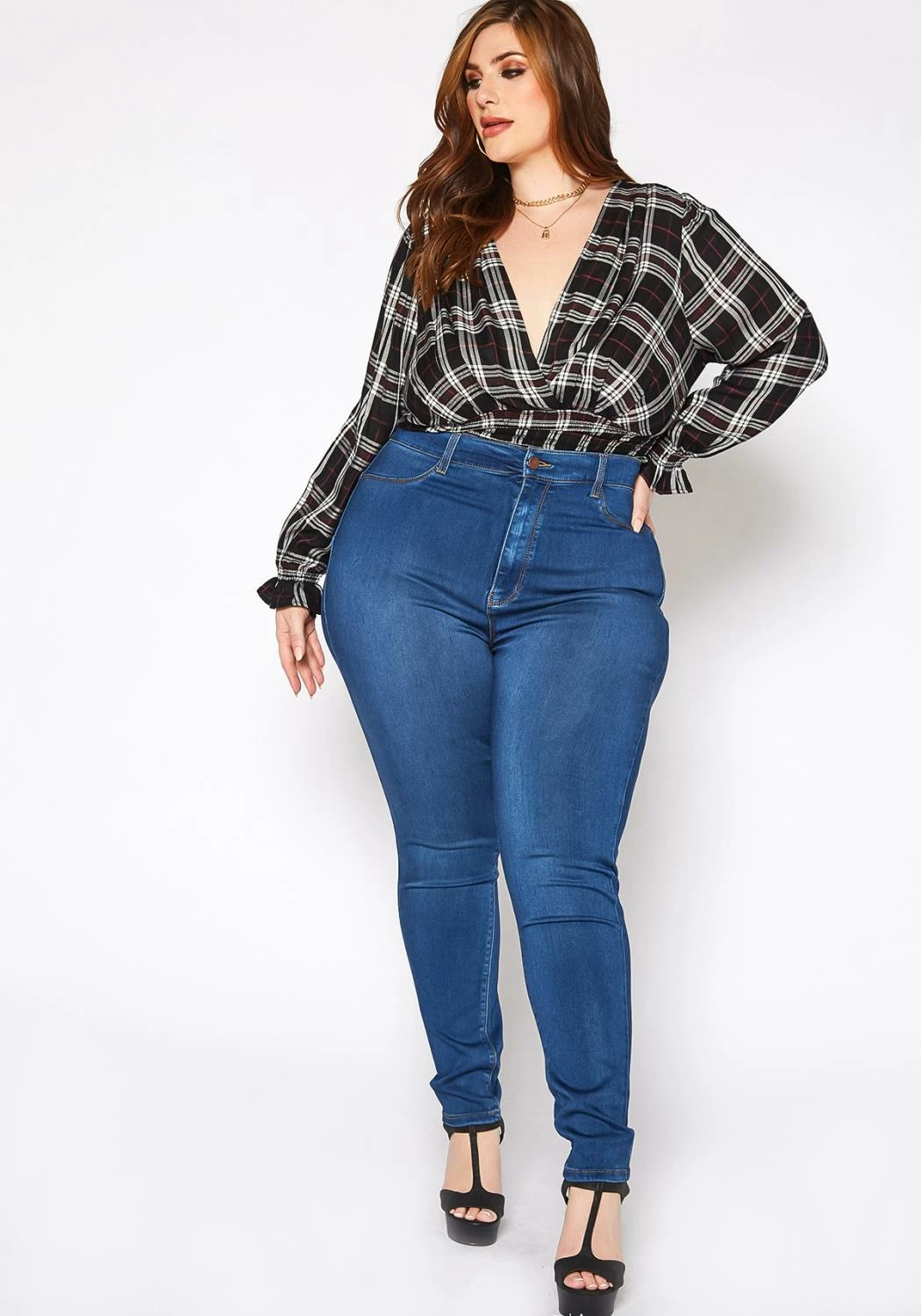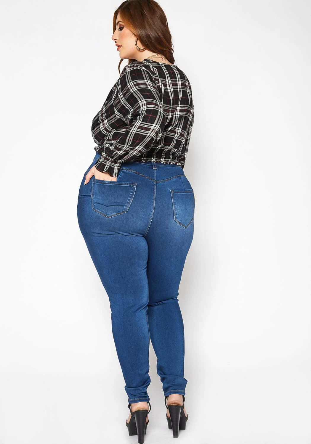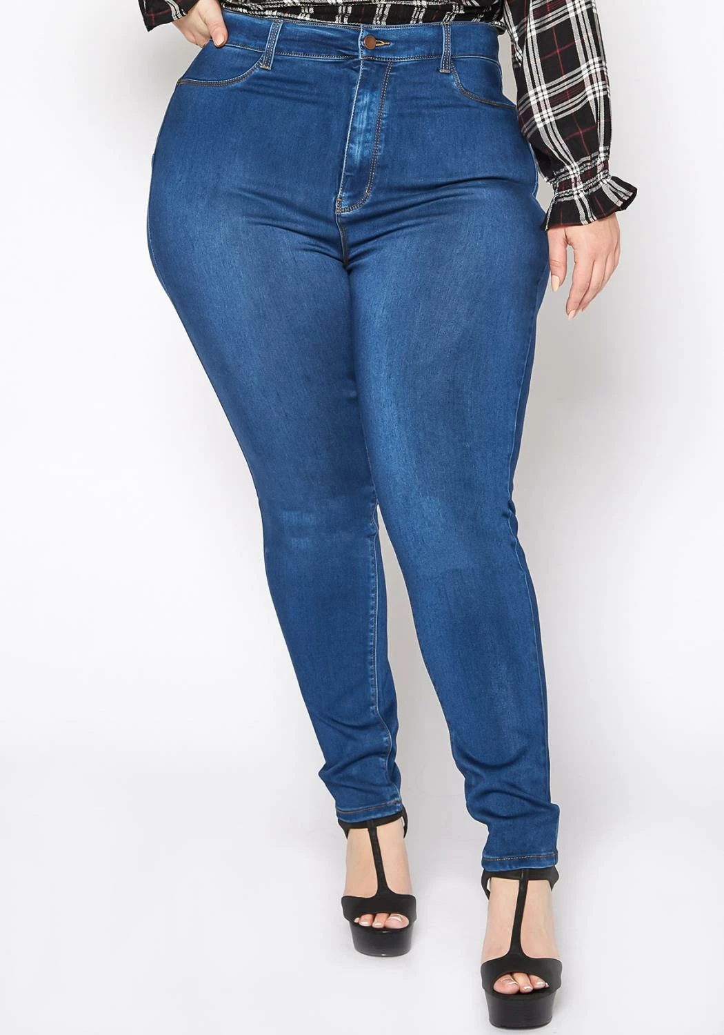 Asoph x Vibrant plus size women’s basic everyday skinny denim jeans in high waisted style plus includes belt loop holes and pockets.