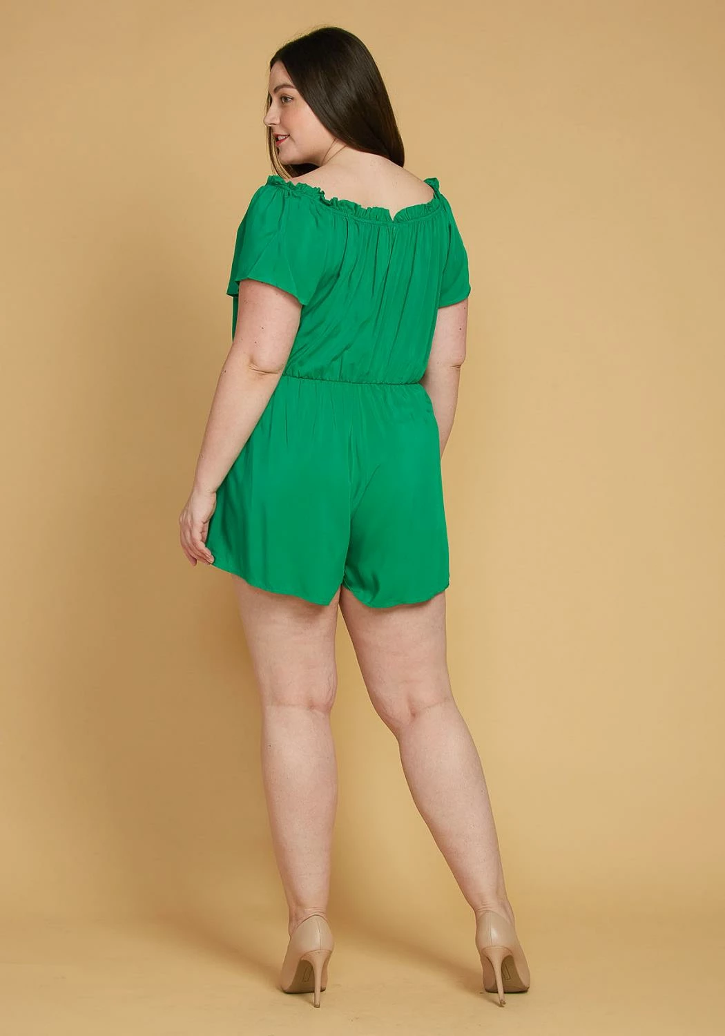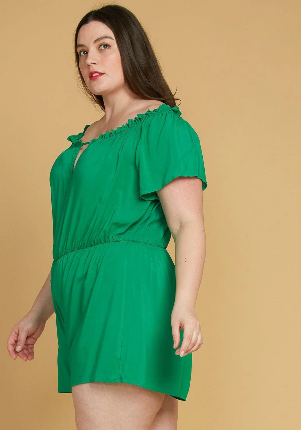 – elasticized ruffle neckline