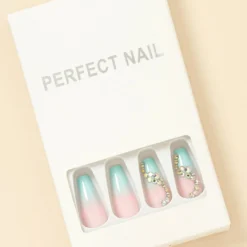Lux Perfect False Nail Set – Rhinestone Sage Ombre