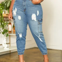 Asoph Plus Size Distressed Denim Cargo Mom Jeans
