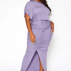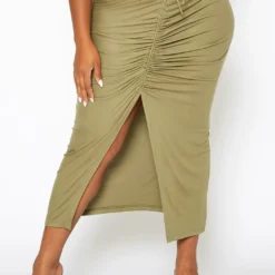 Asoph Plus Size Centered Drawstring Hem Maxi Skirt