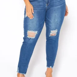Asoph Plus Size Distressed Blue Wash High Waist Skinny Denim Jeans