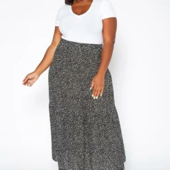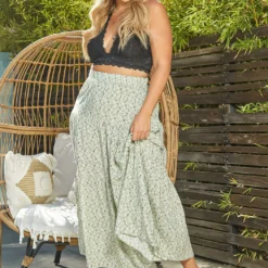 Asoph Plus Size Dainty Floral Print Maxi Flare Skirt