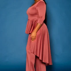 Plus Size High Low Peplum Top & Pants Set