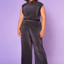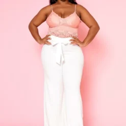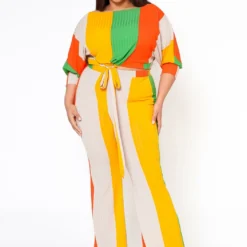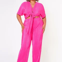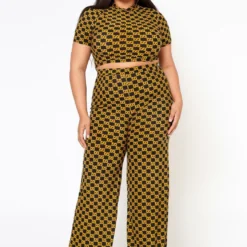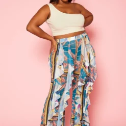 Plus Size Lavish CC Print Crop Top & Dress Pants Set