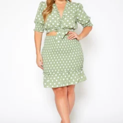 Plus Size Polka Dot Print Crop Top & Mini Skirt Set