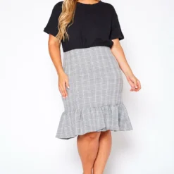 Plus Size Ribbed Knit Crop Top & Skirt Set