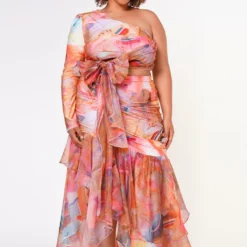 Plus Size Multi Print Ruffled Flare Maxi Skirt