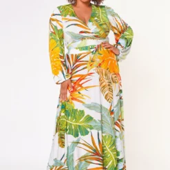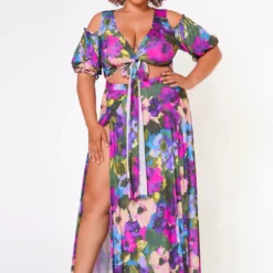 Plus Size Tie Front Surplice Top & Maxi Skirt Set