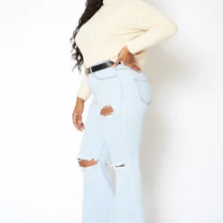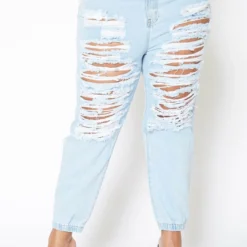 Vibrant Plus Size Light Wash Destroyed Boyfriend Jeans