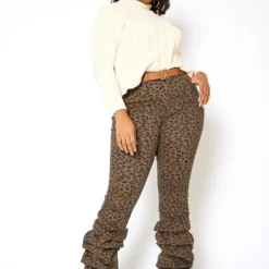 Vibrant Plus Size Womens Leopard Ankle Scrunched Jean