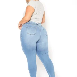 Vibrant Plus Size Light Denim Distressed Skinny Ankle Jeans