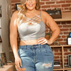 Vibrant Plus Size Womens Dark Wash Ankle Scrunched Jeans