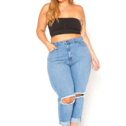 Vibrant Plus Size Ripped Knee High Rise Mom Jean