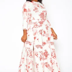 Plus Size Antique Floral Print Crop Top & Maxi Skirt Set