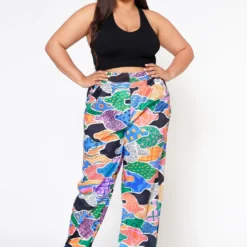 Plus Size Abstract Pattern Ankle Cuffed Pants