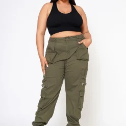 Plus Size Ankle Cuffed Utility Cargo Pants