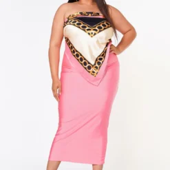 Plus Size Bandeau Scarf Top & Bodycon Maxi Skirt Set