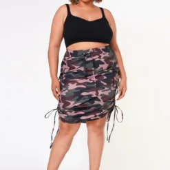 Plus Size Drawstring Hem High Waist Maxi Skirt