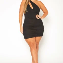 Plus Size Bustier Asymmetric Sleeve Mini Dress