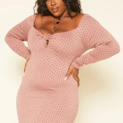 Plus Size Polka Dot Long Sleeve Mini Dress