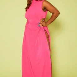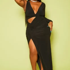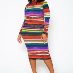Plus Size Multi Color Pattern Long Sleeve Midi Dress