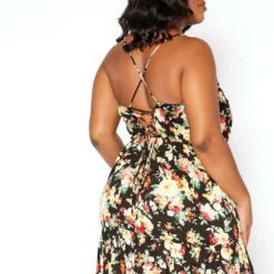 Asoph Plus Size Floral Print Crosslace Back Mini Dress