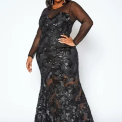Asoph Plus Size Elegant Patterned Lace Mermaid Hem Gown