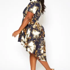 Asoph Plus Size Brocade Print High Low Flare Dress