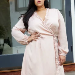 Nurode Plus Size Ruffle Trim Long Sleeve Wrap Dress