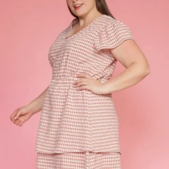 Pleione Plus Size Puff Shoulder Ruffle Checkered Dress