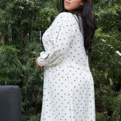 Nurode Plus Size Triangle Print Long Sleeve V-Neck Dress