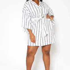 Asoph Plus Size Pin Striped Button Front Mini Dress