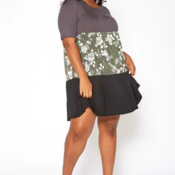 Asoph Plus Size Rose Floral Color Block Mini Dress