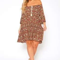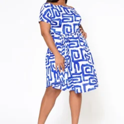 Plus Size Abstract Print Off Shoulder Flare Dress