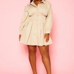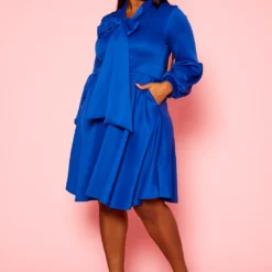 Plus Size Bow Collar Fit & Flare Mini Dress