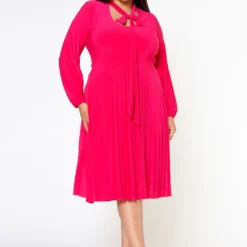 Plus Size Bow Collar Pleated Fit & Flare Dress