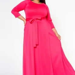 Plus Size Bow Front Fit & Flare Maxi Dress