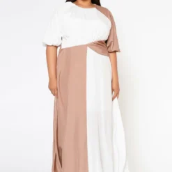 Plus Size Color Splice Fit & Flare Maxi Dress