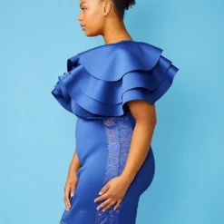 Plus Size Layered Ruffle Shoulder Party Dress