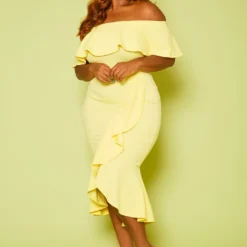 Plus Size High-Low Off Shoulder Ruffle Midi Dress