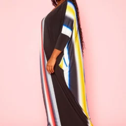 Plus Size Gradient Pattern Splice Flare Maxi Dress