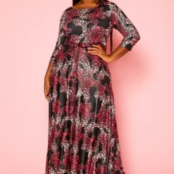 Plus Size Fuchsia Leopard Print Fit & Flare Maxi Dress