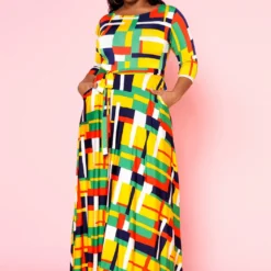 Plus Size Geometric Pattern Fit & Flare Maxi Dress