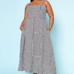 Plus Size Houndstooth Print Maxi Dress