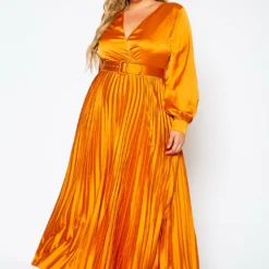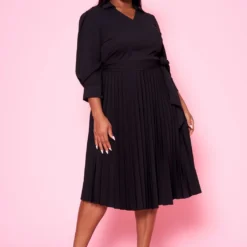 Plus Size Pleated Fit & Flare Midi Dress
