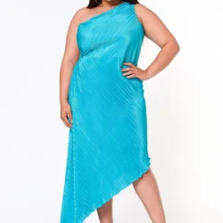 Plus Size Pleated Asymmetric One Sleeve Dress