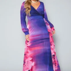 Plus Size Rose Gradient Print Fit & Flare Maxi Dress